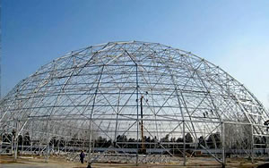 干煤棚網架主要搭建機構為平面剛架、平面桁架、平面拱以及柱面網殼結構。